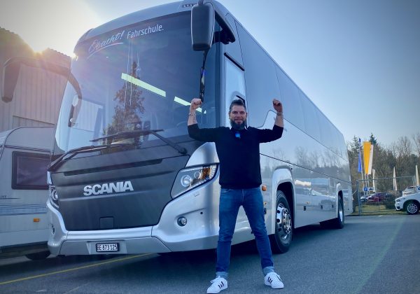 Wir gratulieren Roman Aebi zur bestandenen Führerprüfung D Gesellschaftswagen.